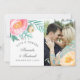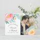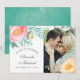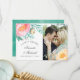 Mint, rosa och gult, exotisk sommartid bröllop, tack vare fotokort med peonier och tropisk bladfilm.