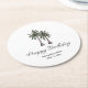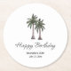 Tropical 30th birthday party paper coaster, with a palm trees illustration and elegant script design. With customizable lettering, you add your own information. A great way to add the beach to that special birthday celebration.