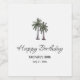Tropical 30th birthday party beverage label, with a palm trees illustration and elegant script design. With customizable lettering, you add your own information. A great way to add the beach to that special birthday celebration.