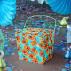 Roligt och fruktigt tropiskt papaya på en pulserande turkobakgrunden