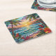 Tropical Paradise | Coastal Beach Scene Impasto Underlägg Papper Kvadrat