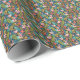 Tropical flowers and leaves in pink, blue, green, and many more colors combine to make a beautiful jungle print on this wrapping paper for all occasions.