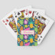 This is custom name personalized playing cards featuring cute vibrant colorful tropical fruits with pineapple, papaya, dragon fruit, mango, banana, watermelon, and lemon with tropical leaves. You can change the name on the gards with personalize template