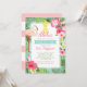 Inbjudningarna till bröllop bachelorette luau-partiet har en söt rosa flamingo med ananas och lush ram på grönt handflatan löv fronds och tropiska hibiscus blommor i shock rosa, solens gult och vitt. Snyggt med vattenblå banderoll kan vara helt personlig. Bakgrunden till färg är sjöcellblått/grönt. En anpassningsbar blommigt buquet med cabana rand mönster och anpassningsbarna "Du är inbjuden!" visar kortets baksida.