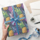 Bold tropical pineapple pattern with painterly brushwork in vibrant purples, pinks, yellows, and greens against a deep purple background. This eye-catching design features oversized pineapples with lush fronds in an artistic, almost impressionistic style. Perfect for summer celebrations, tropical themes, and anyone who loves bright, cheerful fruit patterns.