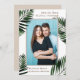Denna klassiska tropiska handflatan lämnar bröllop spara datum har en neutralt sandbeige baksida av kortet.