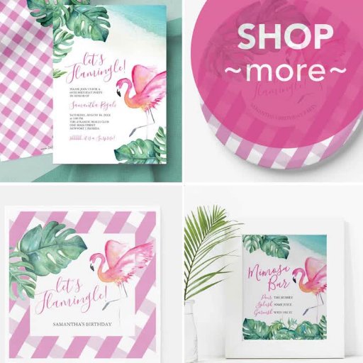 Den här roligten, 50:e Födelsedagsfest inbjudan, innehåller ord "Låt oss Flamingle" med gästen för hedersens namn i en modern handskriven skripttypografi med händelseinformation i ett klassiskt serif-teckensnitt. Designad med min ursprungliga vattenfärgsflamingo, Monstera handflatan löv och Sea shoreline. Kortet återgår till en komplementär rosa gingham mönster med fler löv från handflatan. Ett botaniskt men roligt val för en tropisk bakgård tiki party, sommarluaus för avslappnad för vuxen 50 Födelsedagsfester. Om du vill se fler inbjudningar från Victoria Grigaliunas på sommarfesten går du till DotellABelle på Zazzle på www.zazzle.com/dotellabelle.