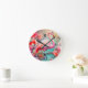 Tropical Rosa Flamingo with Flowers-87361 Rund Klocka