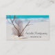 Affärskort med en fantastisk bild. Tropiskt blått vatten och skummande surfa i bakgrunden. En samling av sjöceller och stammar på en vit sandstrand.