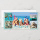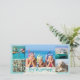 Ett kollage för kust-, strand- eller tropisk julfoto med 5 bilder och en pjäs på "Season's Greetings" med SEAS & HÄLSNING i modern penselhandskriven typografi i turkos accentuerad med stjärnfisk. Bakgrunden är en inaktiverad vattenfärgsarbetsyta. Det här kortet koordinerar med dina foton på strand, kryssning, hav, segling, tropisk semester, surfning, scuba eller snorkeling eller så skickar du önskemål från din tropiska eller strandnära plats. ASSISTANS: Om du vill ha hjälp med designändring eller överföring av designen till en annan Chatta kontaktar du designern INNAN ORE ORDERING via Zazzle-meddelandefliken eller e-postmeddelandet makeitaboutyoustore@gmail.com.