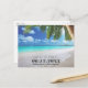 Spara datum bröllop postkort för din tropiska strand destination bröllop. Turkos vatten, vit sand och palmer design spara datum-kort är anpassade med din bröllopsinformation.