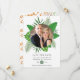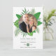 Tropical water color foliage aloha-badbröllop spara anpassadet för fotoannonseringskort till dina händelsespecifikationer. Om namnen ser lite ocentrerat ut när du anger det, "Klicka för att anpassa ytterligare" (den blå länken grund i "Anpassa den här mallen") för att enkelt justera i designområdet.