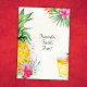 Create a tropical oasis for your loved one's divorce with our delightful invitations. The watercolor design bursts with a pineapple, Hawaiian flowers, and a cocktail, all set against a light, refreshing background. "Divorce Party" in a beautiful script font sets the tone, and the back ensures "Friends, Food, Fun!" Customizable party details in a simple serif font make personalization a breeze. Start planning the ultimate divorce support celebration now – order your invitations today!