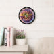 Embrace the tranquil rhythm of island life with the Tropical Sunrise Sunset Repeat clock. This vibrant timepiece features a high-definition watercolor graphic of a serene beach at twilight, complete with silhouetted palm trees and a calm ocean. The sky is rendered in a stunning gradient of warm oranges, soft pinks, and deep purples, reflecting the beauty of a coastal horizon. Overlaid on this scenic backdrop is the stylized, hand-scripted text "Sunrise Sunburn Sunset Repeat," accented by playful star and sunburst icons. While the design captures the fluid, artistic textures of a watercolor painting, this is a durable high-definition graphic application on a premium round clock face. It is a prestigious and refreshing addition to any beach house, patio, or vacation-themed room.