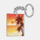 Bring a little piece of the tropics to your daily routine with this vibrant sunset keychain. The double sided design showcases a stylized island landscape with iconic palm trees and golden ocean waves, making it easy to spot your keys in style. This small but colorful accessory is perfect for travel lovers, new homeowners, or as a fun souvenir from a summer getaway. It is a durable and lightweight way to add a pop of exotic nature to your keys, backpack, or purse.