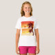 Bring some sunshine to her wardrobe with this cute girls’ t-shirt featuring a colorful tropical sunset. The fun and bright vector art shows a happy island scene with palm trees and a big orange sun, perfect for school, play, or family vacations. This shirt is a great way for girls to show off their love for the beach and nature. The cheerful colors and summer theme make it a favorite choice for birthdays and holiday gifts.