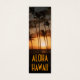 Foto av en scenisk solnedgång med handflatan träd, tagen i Waikiki Beach, Hawaii. Du kan ersätta ord "Aloha Hawaii" med ett eget meddelande och på baksidan infoga ditt namn eller din ändringstext (eller radera).