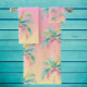 This bath mat will be so inviting after your day at the ocean or pool. Tropical shades of an island sunset is a summer staple. Add a colorful palm tree and it becomes the most beautiful beachy bathroom accent. Multicolor soft water color pastels.