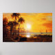 Albert Bierstadt Tropical Sunset with Fishing Boats poster. Oil painting on canvas. Though Bierstadt is typically associated with sweeping landscape paintings of the American West, he also devoted multiple canvases to tropical scenes in Florida and the Caribbean. This tropical sunset is one of his most impressive works. The palm trees and fishing boats in and around the bay are brought to life with fiery oranges and reds as the sun drops below the horizon. A great gift for fans of Albert Bierstadt, tropical landscapes, and ocean sunsets.