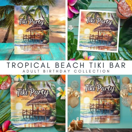 Ställ in scenen för ett oförglömligt firande med den här fantastiska Tropical Beach Tiki Party-födelsedagsinbjudan! Genom att utnyttja den äventyrliga allurren på en tropisk ö har den här utformningen en pulserande vattenfärgssolnedgång, havets vinkara, sandstrand, och en inbjudan till tiki pub-set mitt i lush handflatan träd skapar den perfekten som föregår en natt med tiki-plågor, exotiska cocktails och bra gånger. Texten kan vara personlig för alla tillfälle - du kan ändra den till "studentfest" eller "50-årsjubileum" till exempel. Oavsett om du har en havsglänkande eller bakbäckenbottnad kommer det här öga-fångstande inbjudan verkligen att få tillfälle att gå isär. Art av KL Lagrar