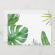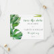 This elegant tropical design features lush green watercolor leaves framing a clean and modern layout. The fresh botanical elements, including palm and monstera-inspired foliage, create a natural and sophisticated look perfect for destination weddings, beach ceremonies, or garden celebrations. With its minimalist style and vibrant greenery, this design brings a refreshing, organic feel to your special announcement.