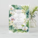 Whether you are planning a destination event, a beachside soirée, or an elegant summer garden party, this design sets a sophisticated yet relaxed tone. The artwork features a stunning border of watercolor botanicals, including white Phalaenopsis orchids, vibrant Monstera leaves, and swaying palm fronds. The interplay of deep emerald greens and pristine whites creates a modern, fresh aesthetic that is trending this season. A graceful pairing of classic serif fonts and romantic handwritten script for the names of the happy couple.