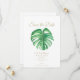 Ett enkelt, elegant 'Spara datum'-kort med ett tropiskt blad-motiv och klassisk guldbokstav.