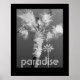 tropikernorna poster svartvita bilder av handflatan träd med textparadis i vit brev som finns som 8 x 10 eller 16 x 20 väggkonst. Originalkonst och fotografi av Ann Powell på poster- och väggkonst. Fotografi Ann Powell alla höger reserverade.