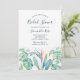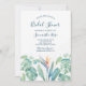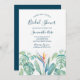 Elegant tropisk bröllopsdusch-inbjudan med en nedre kant av akvarellblommor med frodig botanisk lövverk och grönska. Anpassa med din bröllopsdusch-information i modern handskriven skrift och traditionell sans serif-stil. Inbjudningar har en rik marinblågrön baksida. Perfekt för sommar-, destination- eller strandbröllopsdusch eller brunch. För att se fler liknande designs besök www.zazzle.com/vginvites