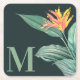 Tropisk Blommar Plant på Mörk Teal Monogrammed Underlägg Papper Kvadrat