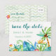 Den här färgglada tropiska "Save The Date"-postkortet är perfekt för paret som ska ha bröllop på stranden i Hawaii, på Floridas strand eller på Karibiens strand. Akvarellbilder av hibiskus, exotiska blad, paradisfåglar, tropiska blommor, ananas och palmer pryder framsidan och baksidan. Inbjudan har färgerna blå, grön, rosa, orange, gul och röd. Färgen på det bakre sicksackmönstret kan anpassas efter dina önskemål. Texten är helt anpassningsbar. Se min kompletta kollektion "Tropical Floral Wedding" för fler artiklar du kan behöva för ditt exotiska tropiska bröllop!