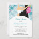 Börja med högerna med trendigets silhuetteribrud och groom på en tropisk turkosa blommigt Inbjudningskort för möhippan. Anpassa vår inbjudan med din bröllop-information så är du redo att gå. ©Jessica Weible