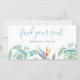 En skylt "hitta sätet" i bröllop med färsk tropisk löv av grönt och fågel av paradisblomma. Sträng över enskilda bröllop bord eller sittkartor. Ett sittande tecken med ett handskrivet kalligrafskriptteckensnitt i turkosa blått. I det här avsnittet finns även motsvarande tropiska kort för bord. Den gröna och blommigt vattenfärgsillustrationen var målad av mig och är unik för Do tell A Belle. Mer design finns på www.zazzle.com/dotellabelle