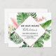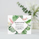 Budgetens Rosa Tropical Handflatan Lämnar Modern och Elegant Blommigt Watercolor Faux Ro Gold Foil Geometric Vår Vi har Flyttat New Home eller Ny adress Card - omfattar vacker och elegant skripttypografi med moderna botaniska blommor och grönenergi för speciella New Home eller Nya adress firande.