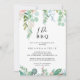 Denna inbjudan till den tropiska blommigten "I Do" BBQ-förlovningsfesten är perfekt för en modern förlovningsfest, repetitionsmiddag, par-dusch, efter party eller någon bröllop-händelse. Utformningsfunktionerna illustrerar vitt, gult, rosa, blommor med vackert vattenfärgsfärgade grönt löv, inspirerande elegans.