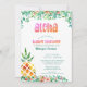 Bjud in gäster till din babyfest med dessa ljusa, roliga tropiska vattenfärgblommor och ananas i hawaiiansk luau-stil med ALOHA och BABY SHOWER-typografi i rosa och orange. Baksidan har ett mönster med ananas från framsidan. Kontakta designern via Zazzle Chat eller makeitaboutyoustore@gmail.com om du vill att designen ändras, eller om du vill ha den på en annan produkt eller koordinera festmaterial och dekorationer för att fullborda ditt tema.