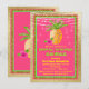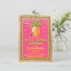 Tropisk bröllopsfestinladan med söt ananas och hibiskusblomma på en vacker het rosa, limegrön och guld folie bakgrund med strängljus. Denna luau-soaré bröllopsfestinladan är lätt att anpassa för ditt evenemang genom att helt enkelt lägga till dina detaljer i den teckensnittsstil och formulering du väljer. Detta är en tryckt design utan riktig folie, glitter, etc.