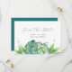 Meddela er förlovning med mina tropiskt eleganta boho "save our date"-inbjudningar med "Save the Date" i ett trendigt, handskrivet typsnitt. Detta enkla kort har handmålade akvarell-gröna palm- och monstera-blad med era namn, bröllopsdatum och bröllopsplats. Baksidan på korten har en komplementerande smaragdgrön färg. Perfekta för små strandbröllop med filippinsk bröllopstema. För fler designs av Victoria Grigaliunas, besök www.zazzle.com/dotellabelle.