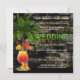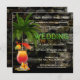 En fantasifull bröllopsmottagning eller efterbröllopsinbjudan med en tropisk cocktail med palmer på en mörk stenvägg bakgrund. De neonbokstäver som säger "Bröllop" kan dras eller raderas. I den avancerade redigeraren kan du också välja en neonskrift som säger "Fira" (längst ner bland alla text- och bildfiler). Vacker för ett par som inte vill ha en traditionell bröllopsfirande.