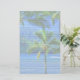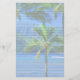 Fodrat papper med ett urblektt foto av ett tropiskt lag i bakgrunden. Deppigheter och gröntar är de huvudsakliga färgerna