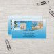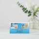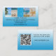 Företagskort med en rad tropiska strandteman foton på en vit och turkos blå bakgrund. På baksidan finns utrymme för ditt eget foto eller en QR-kod. Perfekt för en resebyrå eller resebloggare, och kan anpassas för alla andra ändamål.