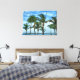 Mot ett blått och vitt marmorerat himlar är det lätt att få tag på tropiska handflatan på en perfekt i bild på en av Berryöarna, på Bahamas.