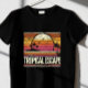 Här är en annan trendande t-shirt-design för vintage-stil som har ett återbergslandskap med solnedbrytande bakgrund och frasen "TROPICAL ESCAPE". Säg till om du vill ha några förändringar! 🌄 ✨