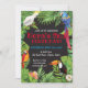 Inbjudningsdesign med tropiska fåglar.