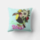 Den tropiska fågeln kudder. Dekorativ kudde för vintagestil flickaktigt med customizabeneon färgar fullständigt blommor "för tropisk fågel" för text färgrika och en toucan fågel. För blommadesign för härliga stilfulla tropiska fåglar en blom- gåva!