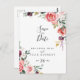 Denna tropiska, färgstarka sommartid-blommigt, för att spara det datum då vykortet är perfekt för ett modernt bröllop. Utformningen illustrerar blommor av vit, rosa, , burgundär och lila elegant som är inordnade i vackra bouquets med grönt bladverk.