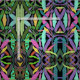 En illustration av snyggt och trendig regnskogar, multifärgad banan löv tropiskt mönster, perfekt för en sjudande botanisk sommarbeskaffenhet. Med färgstark exotisk banans löv är en bladmålning i djungeln fylld med rosa, grönt, blått, teal, turkos, gult, lila, violett och grått färg-bananväxtarter, unika avfaderade banans löv former djungel grönenery mönster, på svart bakgrund.