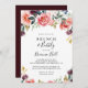 Denna tropiska, färgstarka brunch och bubblande inbjudningskort för möhippan är perfekt för en modern möhippa. Utformningen illustrerar blommor av vit, rosa, , burgundär och lila elegant som är inordnade i vackra bouquets med grönt bladverk.