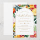Ställ in scenen för ett vibrerande och elegant firande med detta tropiska färgstarka Inbjudningskort för möhippan i Guld, med lush-vattenfärgsgrej, tropiska löv och en strålande guldbåge. Fet röd, gult och orange, accentuerade med vattenfärgsfrukter, skapar en lyxaktig men livlig tropisk vib, perfekt för en möhippa av chic och snyggt. Om du behöver hjälp med att anpassa din inbjudan, så säg till.. Jag skulle vilja hjälpa dig med kärlek!