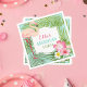 Fira examen med rolig tropisk stil med dessa flamingo examens luauparty servetter. En söt rosa flamingo, frodiga palmblad och livfulla hibiskusblommor ramar in en elegant etikett med examenets namn för en festlig ö-stil. Lätt personalisera namnet och evenemangstexten för en anpassad touch. En perfekt avslutande detalj för alla tropiskt tema examens luauparty firande.